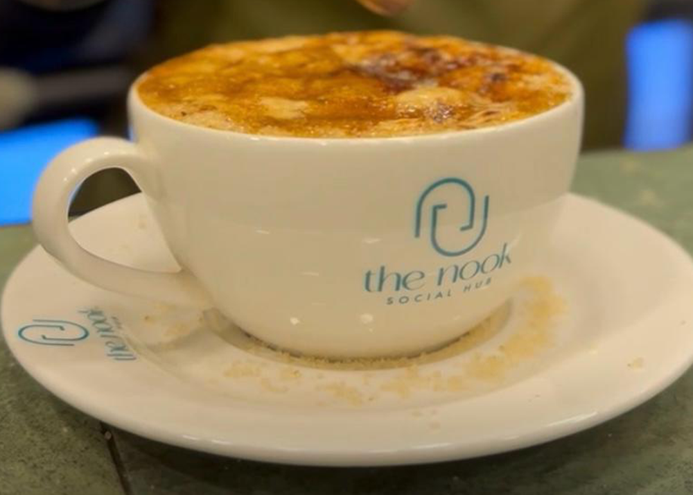 Double Espresso, 30 ml of Vanilla Syrup, 2 packets of brown sugar and 180 ml steamed milk