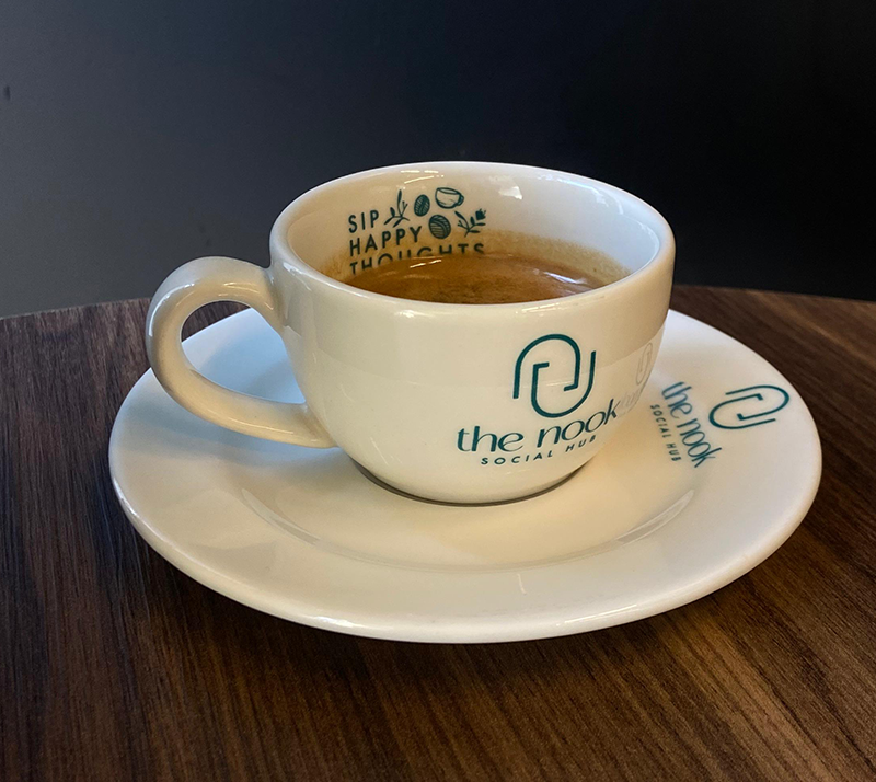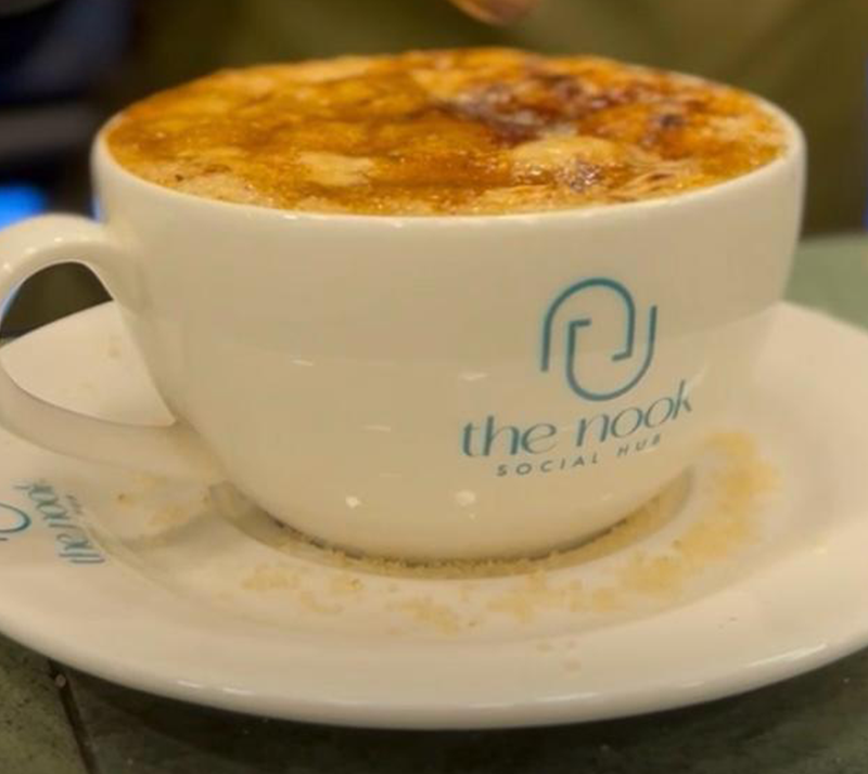 Double Espresso, 30 ml of Vanilla Syrup, 2 packets of brown sugar and 180 ml steamed milk